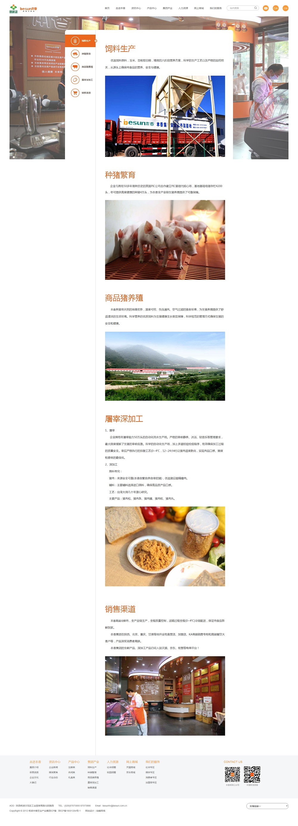 楊凌本香農業(yè)產(chǎn)業(yè)集團有限公司是農業(yè)產(chǎn)業(yè)化國家重點(diǎn)龍頭企業(yè),以“標準化生產(chǎn)、服務(wù)三農、健康為民”為宗旨,通過(guò)“安全飼料生產(chǎn)、優(yōu)良種豬繁育、商品豬養殖、生豬屠宰及豬肉加工、冷鏈配送、線(xiàn)上線(xiàn)下連鎖專(zhuān)賣(mài)”六大環(huán)節,實(shí)現了“從源頭到終端”完整的安全豬肉產(chǎn)業(yè)鏈。
