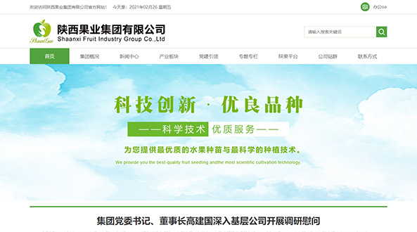 陜西果業(yè)集團是省政府組建的國有企業(yè),2015年10月掛牌成立,注冊資本金5億元。組建陜果集團是省政府按照現代工業(yè)、流通、金融、生態(tài)理念,“實(shí)施大企業(yè)集團引領(lǐng)戰略”,推動(dòng)我省果業(yè)轉型升級,實(shí)現由果業(yè)大省向果業(yè)強省轉變的一項重要舉措。