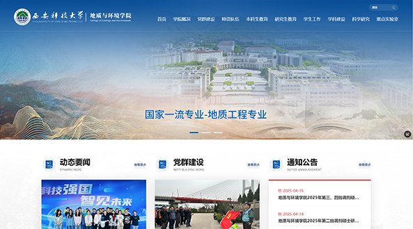 地質(zhì)與環(huán)境學(xué)院的前身為1957年組建于西安交通大學(xué)的地質(zhì)系。1958年隨西安礦業(yè)學(xué)院(西安科技大學(xué)前身)建校而發(fā)展,是建校時(shí)的兩大主體院系之一,至今已有64年的辦學(xué)歷史。 經(jīng)過(guò)六十多年的發(fā)展,學(xué)院學(xué)科專(zhuān)業(yè)日趨完善,具有從本科、碩士到博士完整的人才培養體系。學(xué)院擁有地質(zhì)資源與地質(zhì)工程博士后科研流動(dòng)站、地質(zhì)資源與地質(zhì)工程一級學(xué)科博士位授予點(diǎn)和環(huán)境科學(xué)與工程一級學(xué)科碩士學(xué)位授予點(diǎn);有資源與環(huán)境工程碩士專(zhuān)業(yè)學(xué)位授權點(diǎn)。學(xué)院負責建設的地球科學(xué)、環(huán)境/生態(tài)學(xué)科已進(jìn)入ESI全球排名前1%。在第四輪全國學(xué)科水平評估中,地質(zhì)資源與地質(zhì)工程學(xué)科獲C+水平, 地質(zhì)資源與地質(zhì)工程學(xué)科為省一流培育學(xué)科。