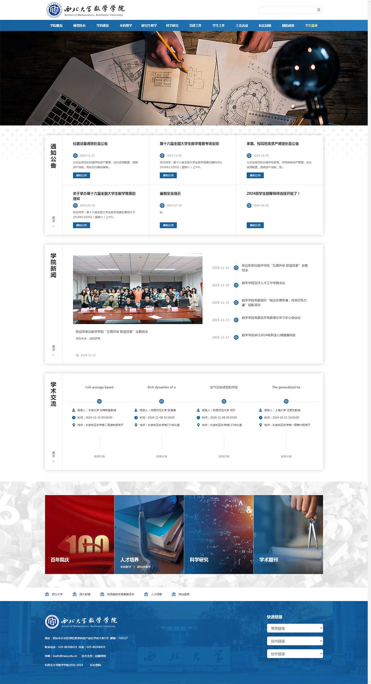 西北大學(xué)(Northwest University),由陜西省人民政府主管,入選中西部高?;A能力建設工程,為教育部與陜西省人民政府共建綜合性全國重點(diǎn)大學(xué) ,是國家“雙一流”建設高校、國家“211工程”建設院校?!竟璺寰W(wǎng)絡(luò )】于2023年開(kāi)始陸續為貴校黨群系統、行政部門(mén)、院系、科研機構、業(yè)務(wù)&服務(wù)單位提供網(wǎng)站制作與技術(shù)維護工作,先后合作的單位有:財務(wù)處、研究生院、數學(xué)學(xué)院、外國語(yǔ)學(xué)院、離退處、科學(xué)史高等研究院、中亞人類(lèi)與環(huán)境一帶一路聯(lián)合實(shí)驗室、中國動(dòng)物靈長(cháng)類(lèi)學(xué)分會(huì )......